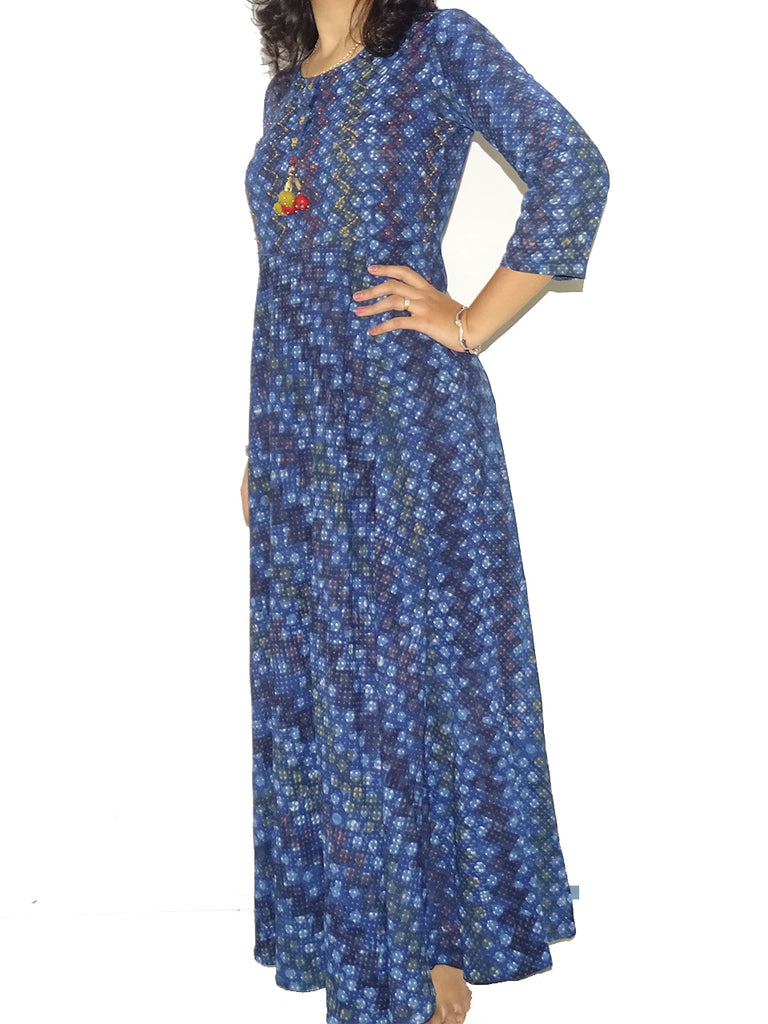 FG's Women's Kutchi Cotton Flare Kurti, Blue (FG-KUR-1009)